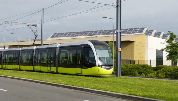 Ci-dessous les 960 panneaux photovoltaïques installés sur le centre d’exploitation et de maintenance du tramway de Brest.
